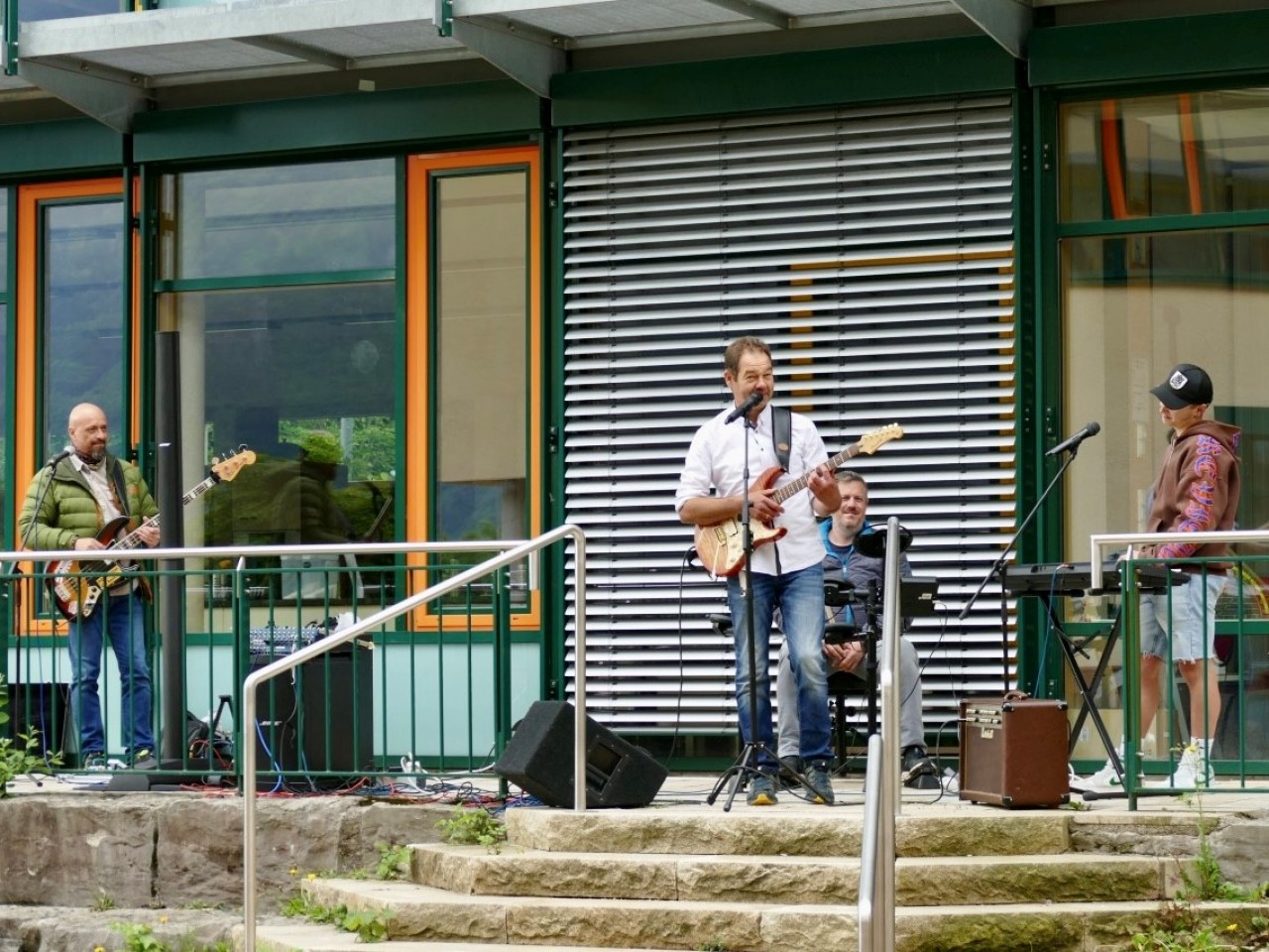 Eine Schulpause der ganz anderen Art: Die Schulband gab Ende Mai 2025 ein Open-Air-Konzert im Pausenhof. Das sollte Schule machen!